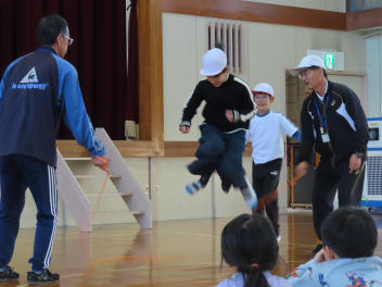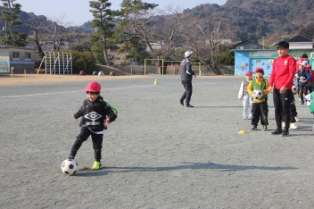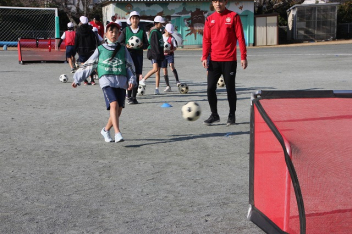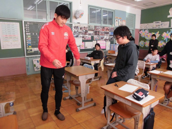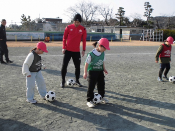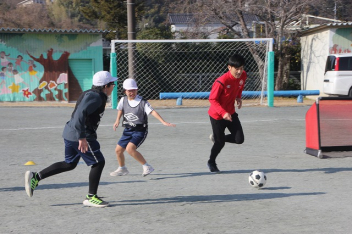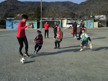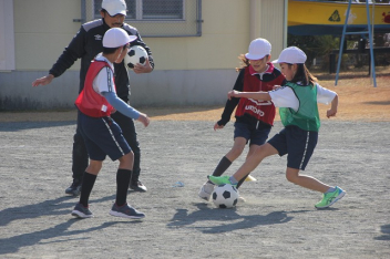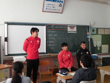 • 今日は、ホンダFCの選手とスクールスタッフが来校して、子供たちと交流しました。2校時は、1,2,3年生、3校時は4,5,6年生が、選手たちといろいろな技に挑戦したり、ゲームをしたりしました。足にボールが吸い付くような技術を披露している選手に子供たちは驚きながらも、楽しく活動することができました。4校時は、5,6年生が、サッカー選手の生活についてインタビューをしました。子供たちは、貴重な話を聞くことができて、とても満足そうにしていました。ホンダFCの選手およびスタッフの皆さん、ありがとうございました。