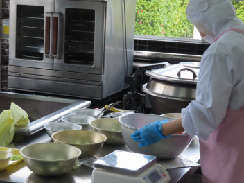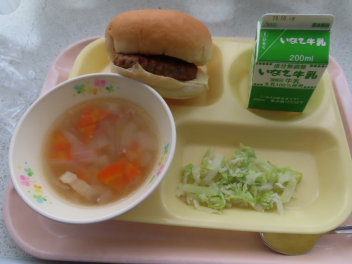 給食員の方が、チーズがとろけすぎないように、ハンバーグを冷ましてからチーズをパンにはさんでくれました。