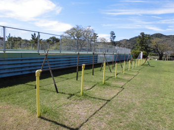 •  来週の稲刈りに向けて、沖通り農地保全会の方が、刈った稲を干す「はざかけ」を設置してくださいました。