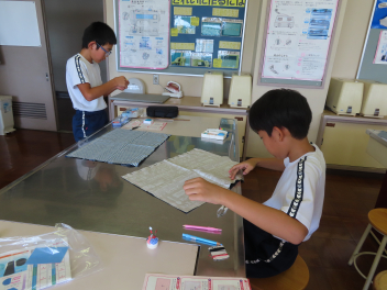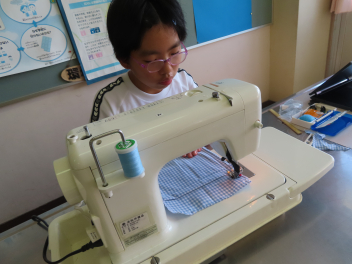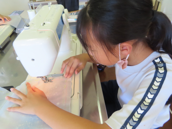 5・6年生は、家庭科でソーイングの学習です。5年生は、リバーシブルランチョンマットの製作が始まり、布に印を付けるところから丁寧に行っていました。ミシンの準備や直線縫いもスムーズにできるようになってきています。6年生は、内ポケット付きトートバッグの製作で、丈夫にする所は返し縫いをして上手に作っていました。完成が楽しみです。