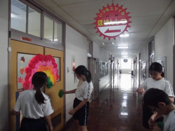 先日、健康委員会のみんなで保健室の入口にレインボーカラーの花を掲示しました。健康委員のみんなで一つ一つ思いを込めて作ったお花たちが美しいです。明日も子供たち1人1人が様々な色の花を咲かせてくれることでしょう!!楽しみです!!