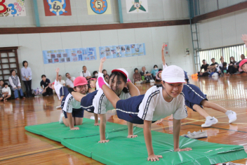 特に、跳び箱運動では、一人一人の子供たちが、自分が目標としている技を披露しました。