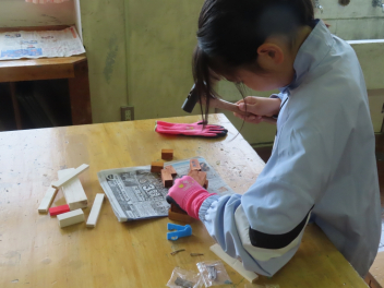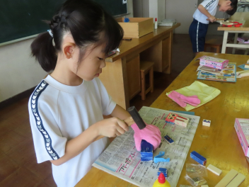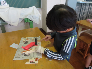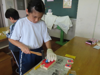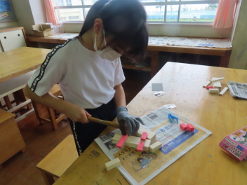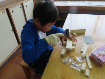 • 図工室から、「トントントン」と調子のよい音が聞こえてきました。