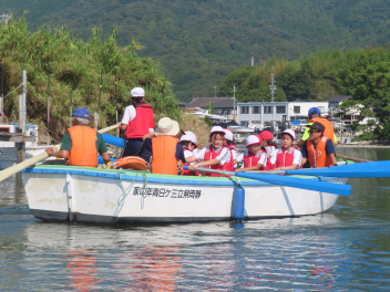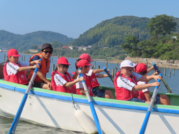 気持ちの良い天候の中、スタートしました。これまで練習を積み重ねてきた4・5年生と先輩の6年生が一丸となり、みんなで力を合わせて臨みました。「ソーレ!ソーレ!」という掛け声も大きく、息を合わせて櫓と櫂をこぎ、無事に寸座や伊目の休憩所にも到着。しばらくの休憩でパワーを充電して、再度出発しました。後半は、雲行きが怪しくなり雨も降ってきましたが、それにも負けずに声を出してゴールを目指して頑張りました。みんなで協力して最後まで諦めず、無事に「細江湖一周」を達成することができて、立派な4・5・6年生でした。