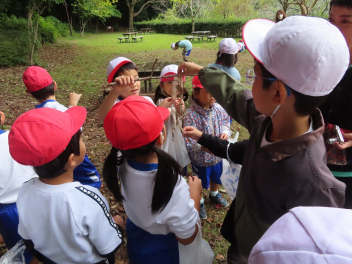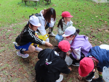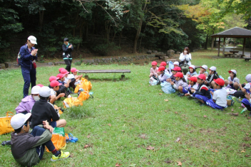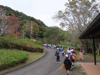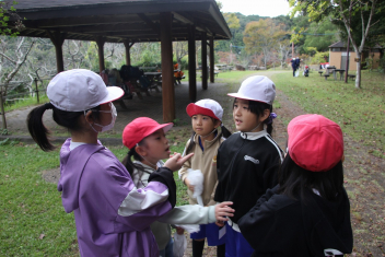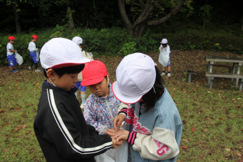 1・2年生で、都田総合公園へ秋見つけに行ってきました。伊目小学校の1・2年生18名の子供たちと一緒に活動をしました。