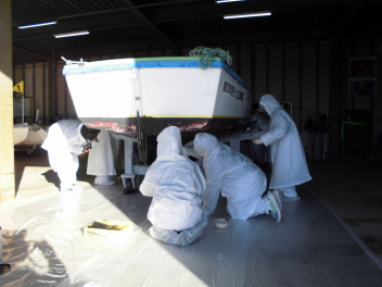 • 和船活動でお世話になった「西宝丸」を、先週は船底清掃をし、今回はペンキ塗りのため三ケ日青年の家に行って来ました。毎年続けている活動なので、昨年度もやっている5・6年生は手慣れた手つきでペンキ塗りをしました。今回が初めての4年生も、上級生の塗り方を参考に、上手に塗れるようになっていきました。6年生は今年が最後なので、最後に船にメッセージを記入しました。「楽しかった。ありがとう」「みんなへ、来年もがんばってね」など、「西宝丸」や下級生に向けての思いが伝わってきました。