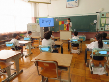 1年生が算数科で「3つのかずのたしざん、ひきざん」の学習を進めています。