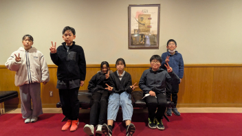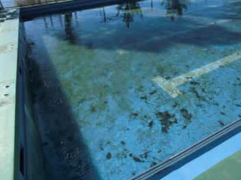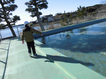 学校のプールの水面が凍っているのを見つけた子供たち!