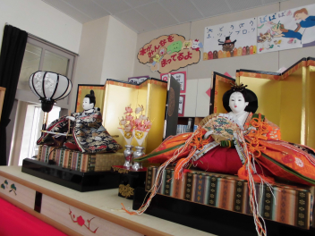 3年生が心を込めて飾ってくれました。優しい表情のおひなさまたち。
