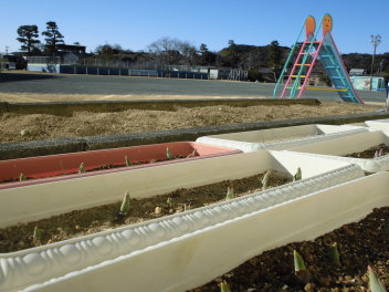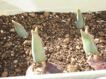 11月終わりに植えたチューリップの球根も芽を出していました。