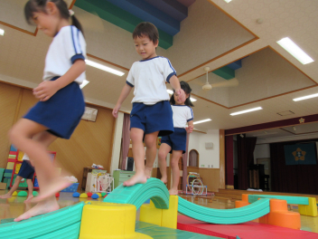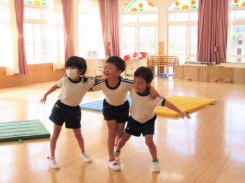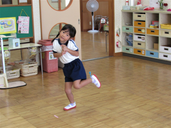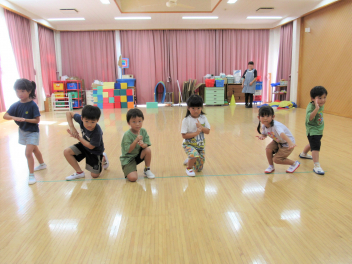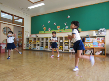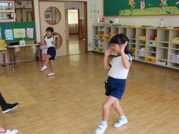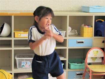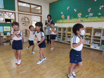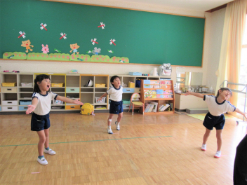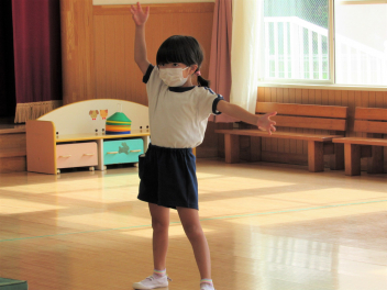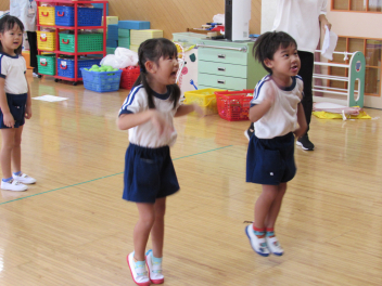 リズムダンスの振りを覚えてきて、益々踊りが楽しくなってきました。年中さん年少さんが笑顔で踊る姿はとてもかわいいです。