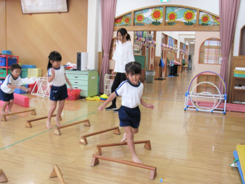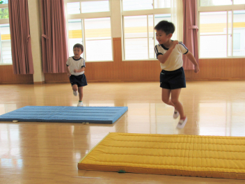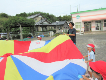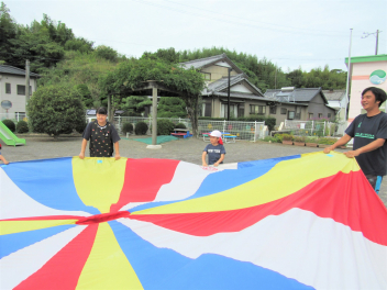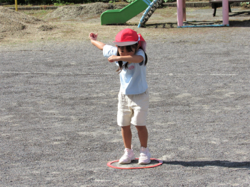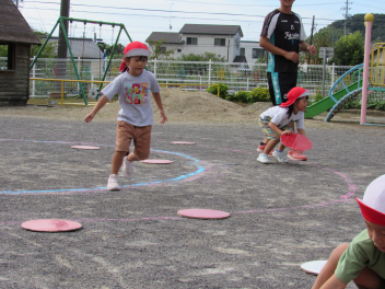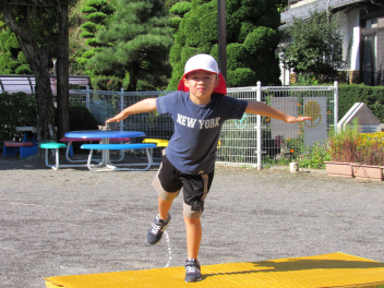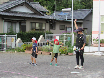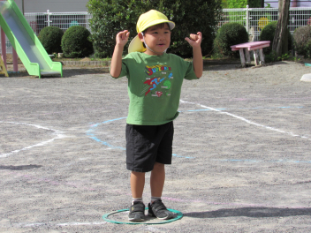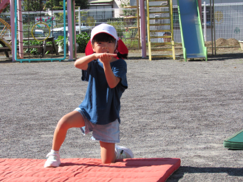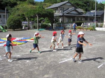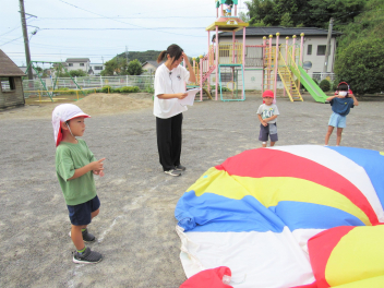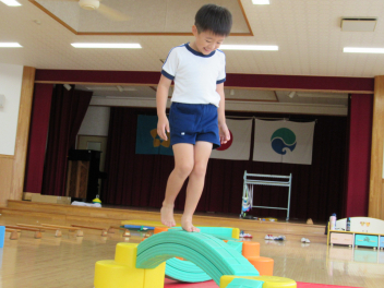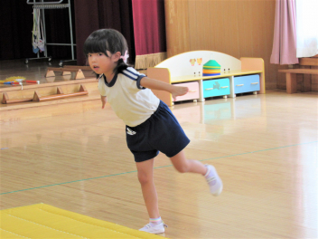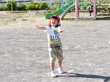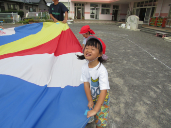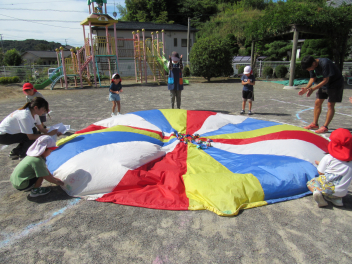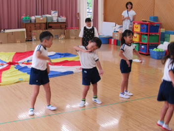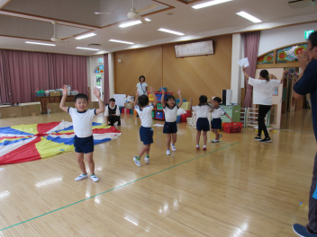 体力が有り余っている子供たちなので、かけっこを何回もしました。パラバルーンもリズムダンスも毎日楽しく行っています。