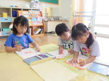 朝方の降雨のため、残念ですが遠足は来月に行くことにして、今日はいつも通り幼稚園で過ごしました。