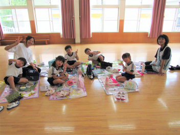 今日は、遠足には行けませんでしたが、お弁当の時間にはおやつも食べて満足気な子供たちでした。来月の遠足は、元気に行って来ようね!