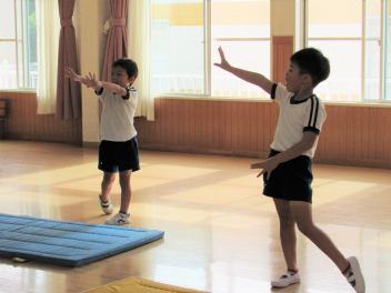 体操やリズム、バルーンなど、細かな動きについてもみんなで確認しながら進めています。今年の運動会のテーマは“忍者”ということで、いろいろな場面で忍者の動きやポーズなどが組みこまれています。