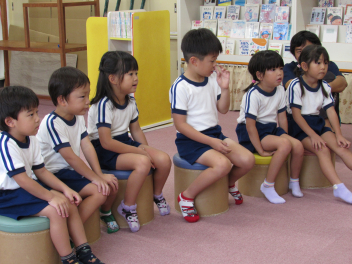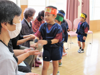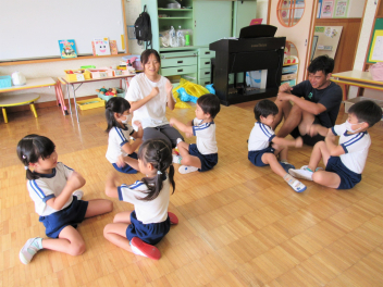 今週金曜日のふれあいデーでには、下村のおじいちゃんおばあちゃんが遊びに来てくれます。その時に一緒に遊ぶ手遊びなど、リハーサルを兼ねてみんなで遊びました。今からふれあいデーを楽しみにしている子供たちです。