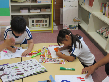 昨日、自分の好きなものをつくった子供たち。今日も張り切って、好きなものづくり~第2弾~に取り組んでいました。