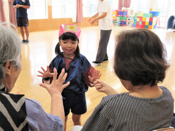 • 地域交流『ふれあいデー』がありました。おじいちゃんおばあちゃんたち、遊びに来てくれかな~と楽しみに待ちながら園庭で遊びました。
