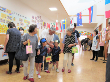 明日は下村のふれあいデーで、おじいちゃんおばあちゃんが幼稚園に遊びに来てくれます。楽しくたくさん遊ぼうね。