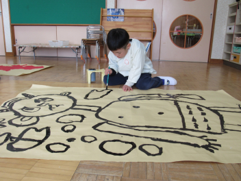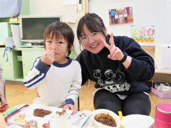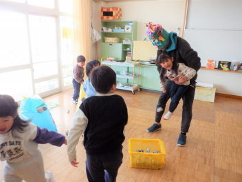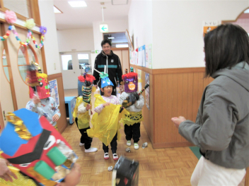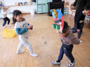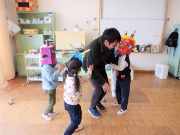 最近、保育室から毎日「鬼は~そと!」「きゃ~っ!助けて~!」という元気のいい声が聞こえてきます。