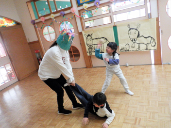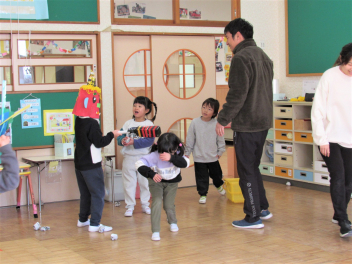 鬼役を交代しながら鬼退治ごっこを楽しみました。