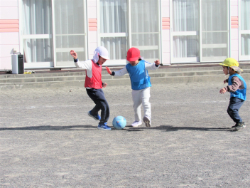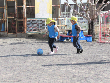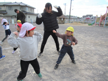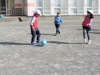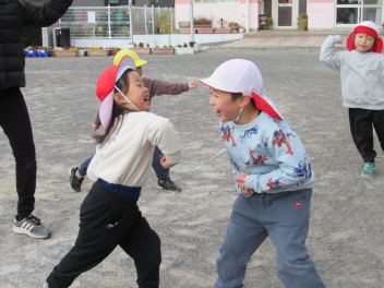 天浜線の時間まで園庭で集会をしました。空気が冷たかったですが、風がなく穏やかな日でした。体操、マラソン、サッカー、遊具などで遊びました。