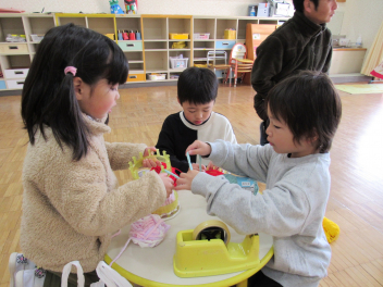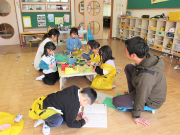 園に戻ってからお弁当を食べて、今度は室内遊びを楽しみました。