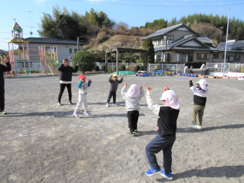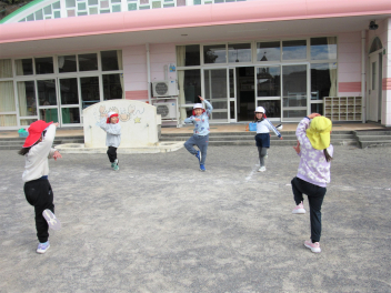 風が冷たくて寒い日でしたが、ひまわりっ子集会で体をしっかり動かしました。