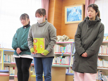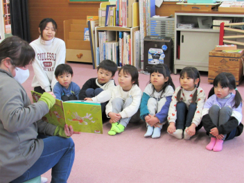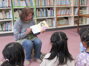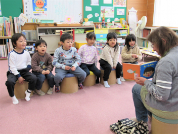 絵本ボランティアの読み聞かせの日でした。今日も楽しいお話に引き込まれていました。