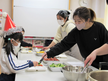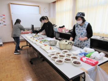 ランチタイムの準備を進めてくれているお母さんたち。