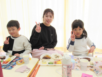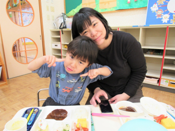 体操やマラソンも今日はお母さんと一緒に行いました。