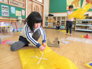 明日は凧揚げをしに小学校へ出掛けます。お楽しみに!