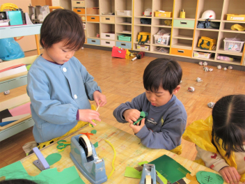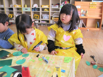 年少さんは画用紙を切り貼りしてつくっていきました。
