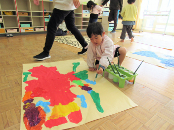 今朝も毛糸遊びに関わってじっくり遊んでいた子供たち。今日初めて遊ぶ友達にやり方を教えてくれていました。いろいろなところで友達を思いやる優しい姿が見られ、嬉しく思います。