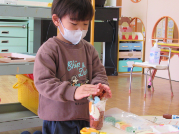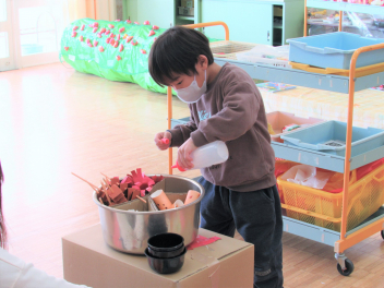 年少さん年中さん、お店屋さんの次の品物づくりに入りました。