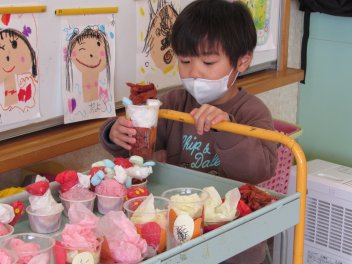 今日は立春です。まだまだ寒い日があると思いますが、春の始まりということで幼稚園では、年長さんは卒園に向けての活動を、年中さんと年少さんは、お店屋さんごっこに向けての遊びを始めました。