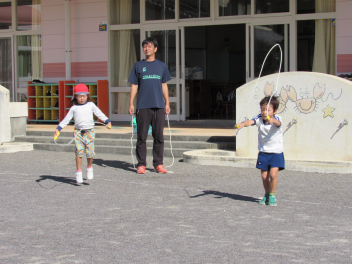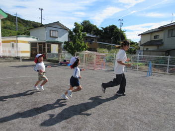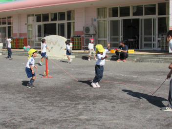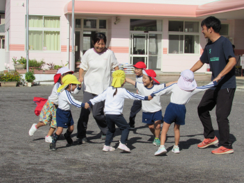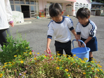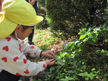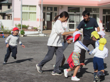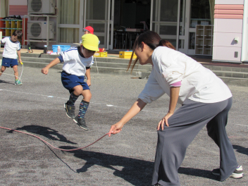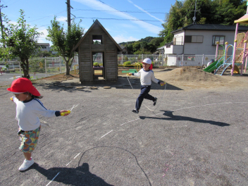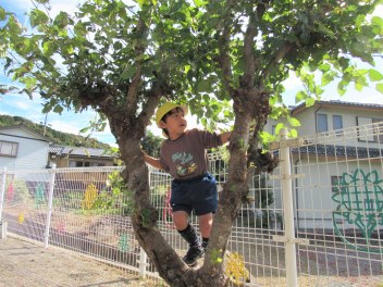 朝は寒さを感じるようになりましたが、子供たちは身支度後、園庭に出て駆け回るので、「暑いよ~!」と言って半袖になったり、腕まくりをしたりして遊んでいます。