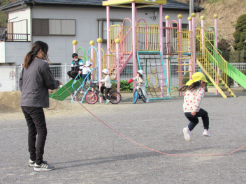 今日はとても暖かい日でした。体操やマラソン、縄跳び、ケイドロをしたら汗をかきました。
