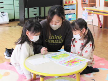 「“こくご”の時間だよ」と、文字に触れた遊びをしていました。