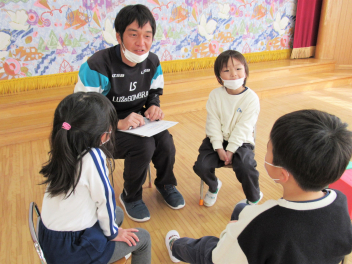 今日は風が冷たくて、とても寒い日でした。体操、マラソン、集団遊びをテンポよく進めていきました。