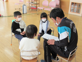 実地訓練後、振り返りを行いました。不審者遭遇時の約束『は・ち・み・つ・じ・ま・ん』を確認しました。