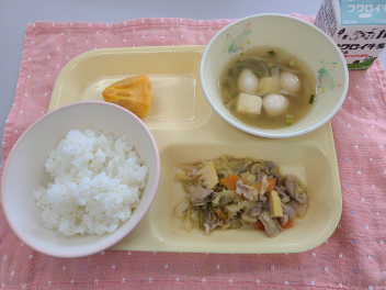 「 ごはん、牛乳、ホイコーロウ、うずら卵のスープ、かき 」でした。