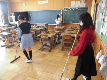 大平台小学校では、毎週火曜日と金曜日の昼に清掃を行っています。