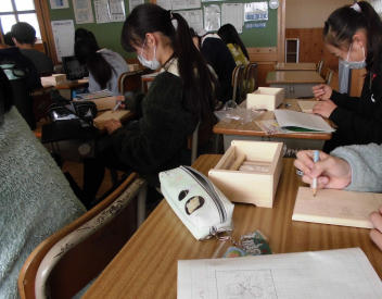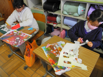 •  4年生は、図画工作科で、のこぎりを使って作品を作りました。板や角材をのこぎりで切り分け、釘やボンドで固定して作品を仕上げました。