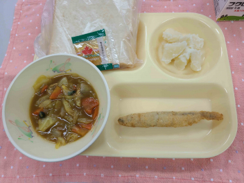 「 パン、牛乳、メープルジャム、ししゃもフライ、じゃがいものミルク煮、カレースープ 」でした。