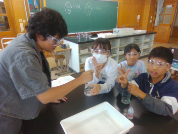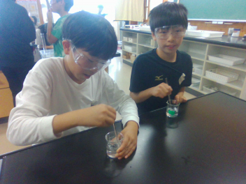 • 理科の学習で、食塩とミョウバンを水に溶かす実験を行いました。