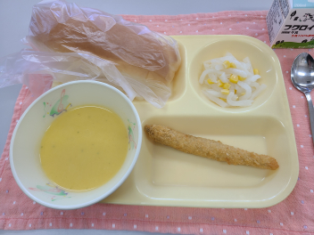 「 パン、牛乳、ししゃもフライ、だいこんサラダ、にんじんポタージュ 」でした。
