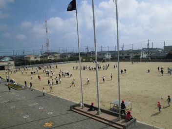 昼休みには、たくさんの子供たちが運動場で遊んでいました。