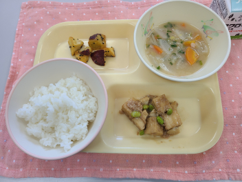 「 ごはん、牛乳、生揚げのそぼろあえ、大学いも、みそ汁 」でした。