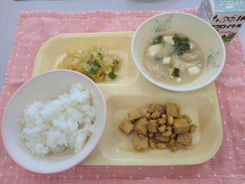 「 ごはん、牛乳、高野豆腐と大豆の甘辛あえ、おひたし、みそ汁 」でした。